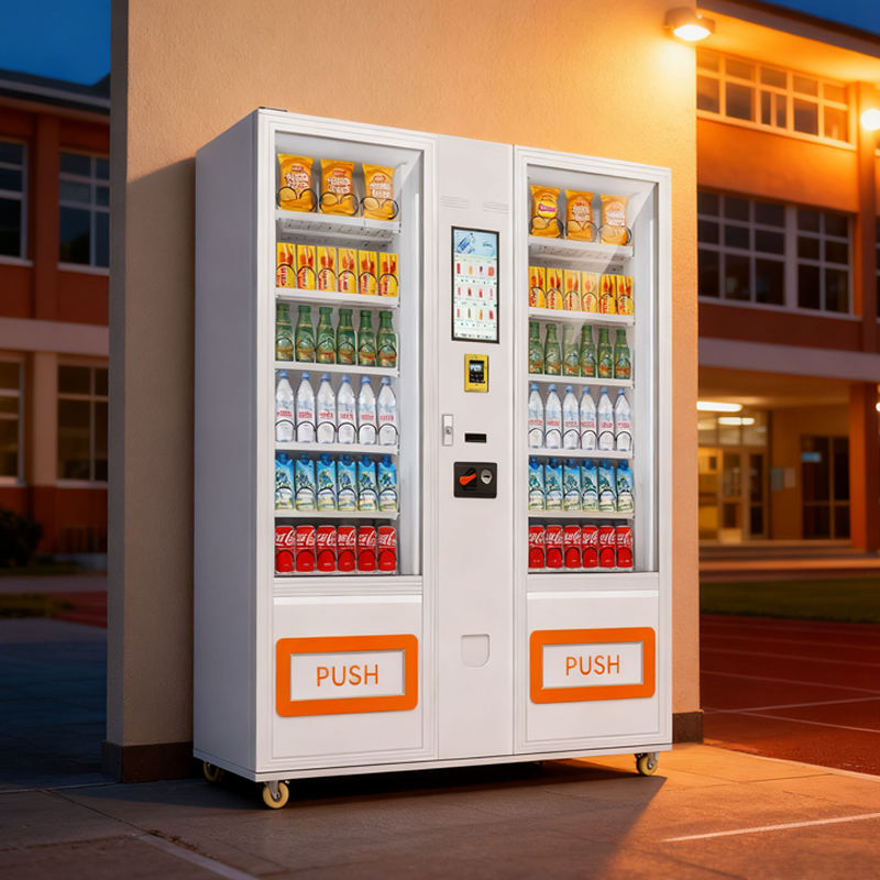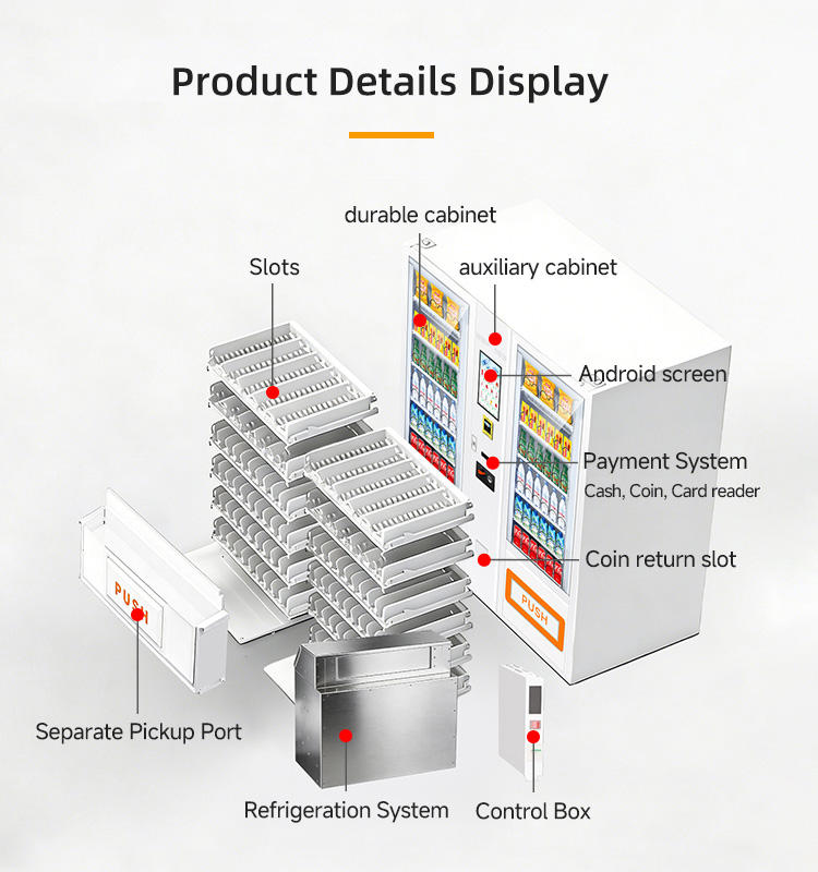 ตู้จำหน่ายสินค้าอัตโนมัติสแตนเลสมาตรฐาน ADA สำหรับอาคารสาธารณะ พร้อมระบบนำทางด้วยเสียง ความสูงเข้าถึงได้ จำหน่ายขนมและเครื่องดื่ม 432+