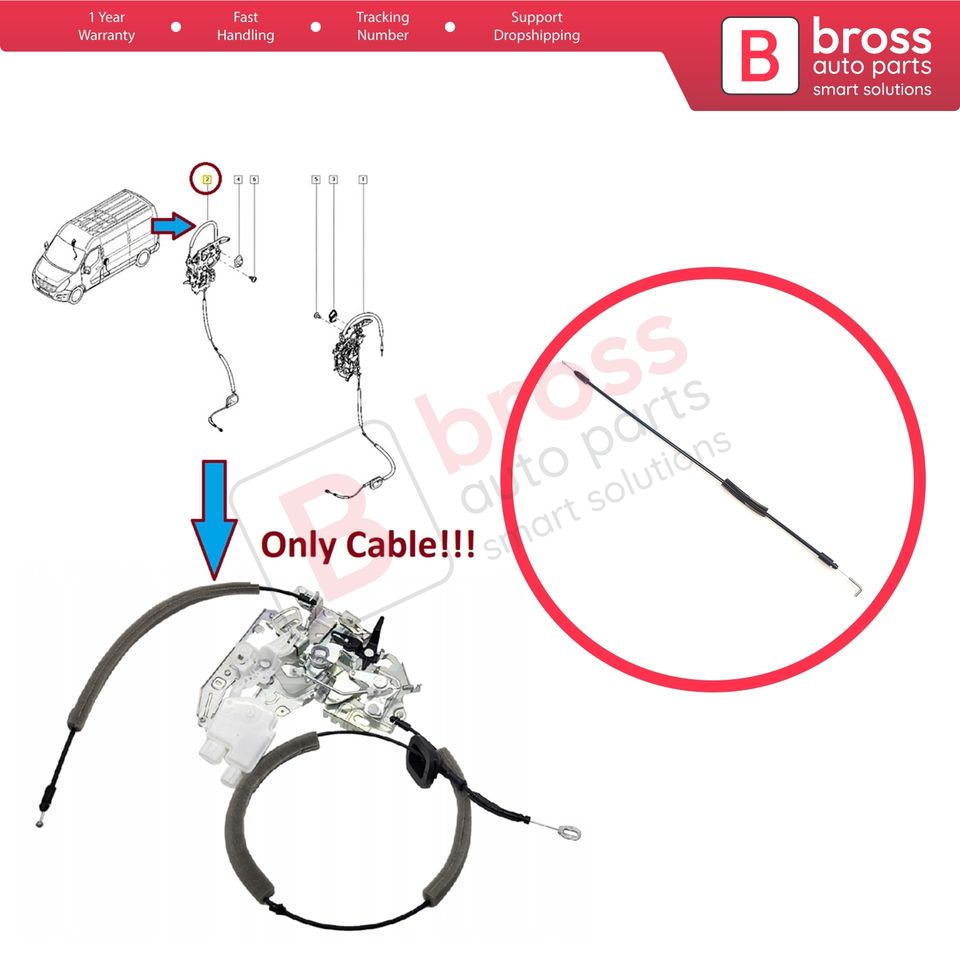 สายปลดล็อคประตูเลื่อนด้านข้าง BDP1603 สำหรับรถมาสเตอร์ MK3 โอเปิ้ล วอกซ์ฮอล โมวาโน บี NV400 826703236R 8200766635 อะไหล่รถยนต์บรอส