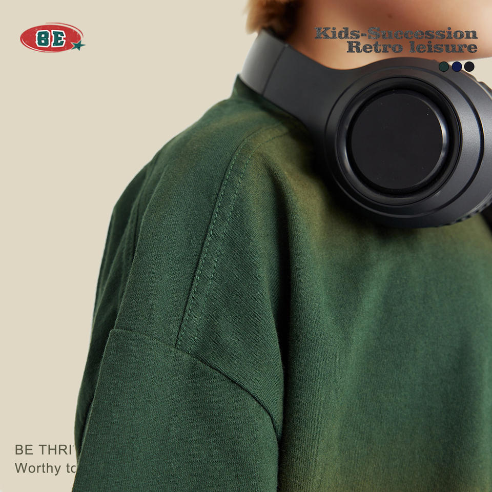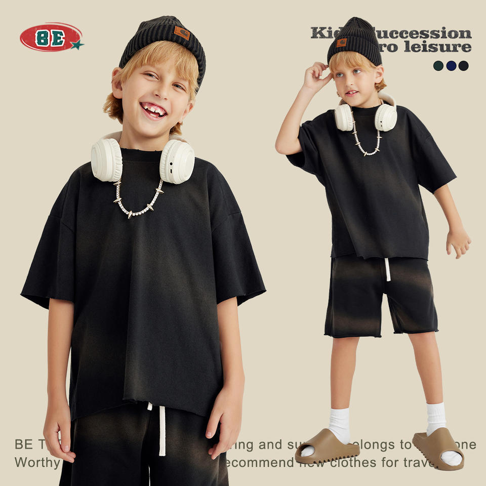 BE เสื้อผ้าเด็ก2025ฤดูใบไม้ผลิฤดูร้อนชุดเด็ก285g ล้างลิงไล่ระดับสีผ้าฝ้ายแขนสั้นอเมริกันย้อนยุค childr
