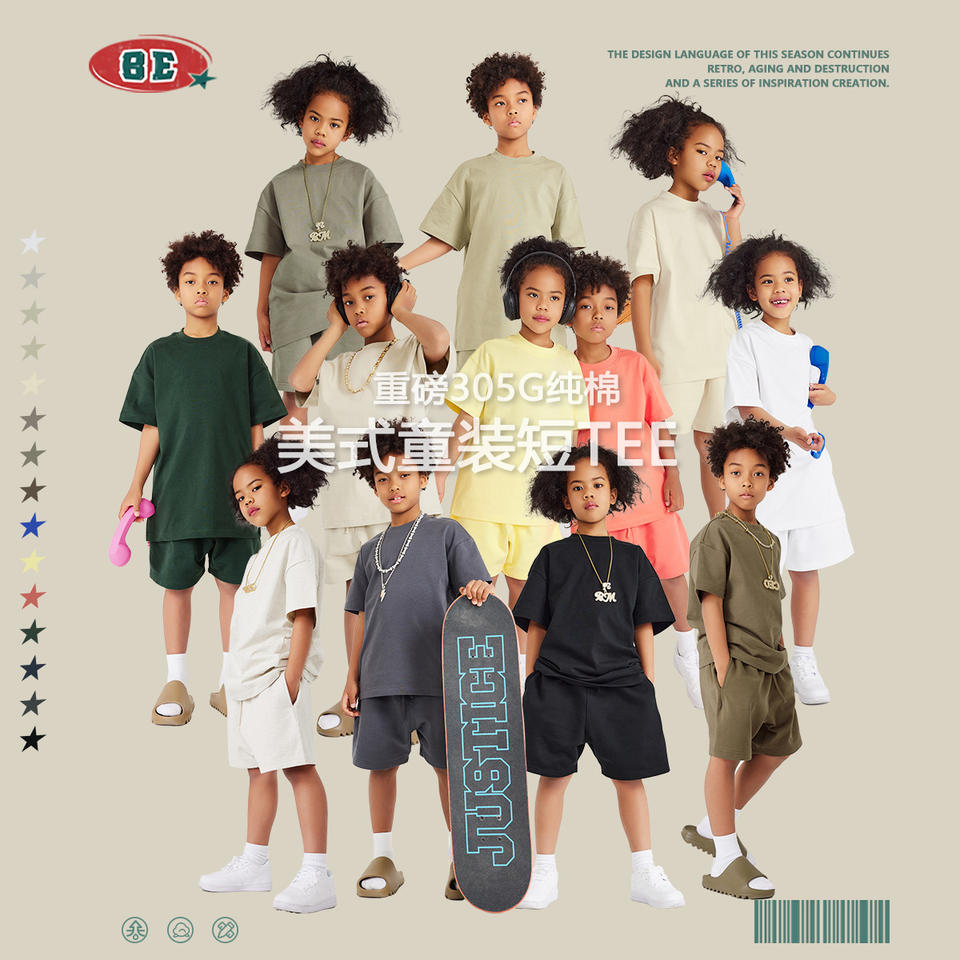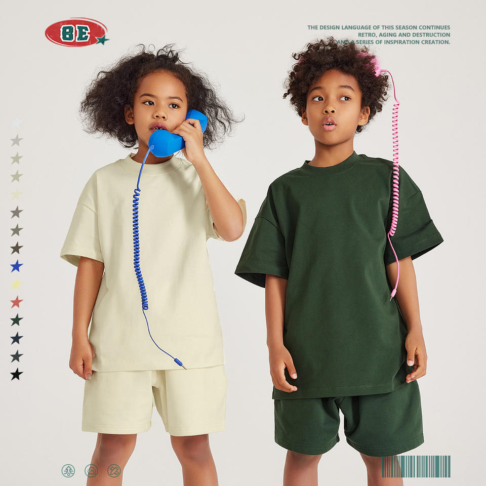 BE เสื้อผ้าเด็ก2025ฤดูใบไม้ผลิและฤดูร้อนเสื้อผ้าเด็กผ้าฝ้ายสีพื้นเสื้อยืดแขนสั้นสียุโรปและ AM