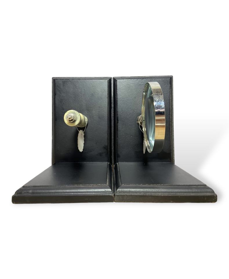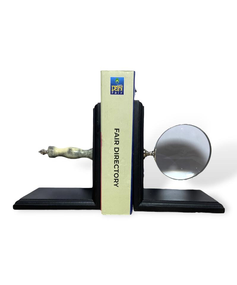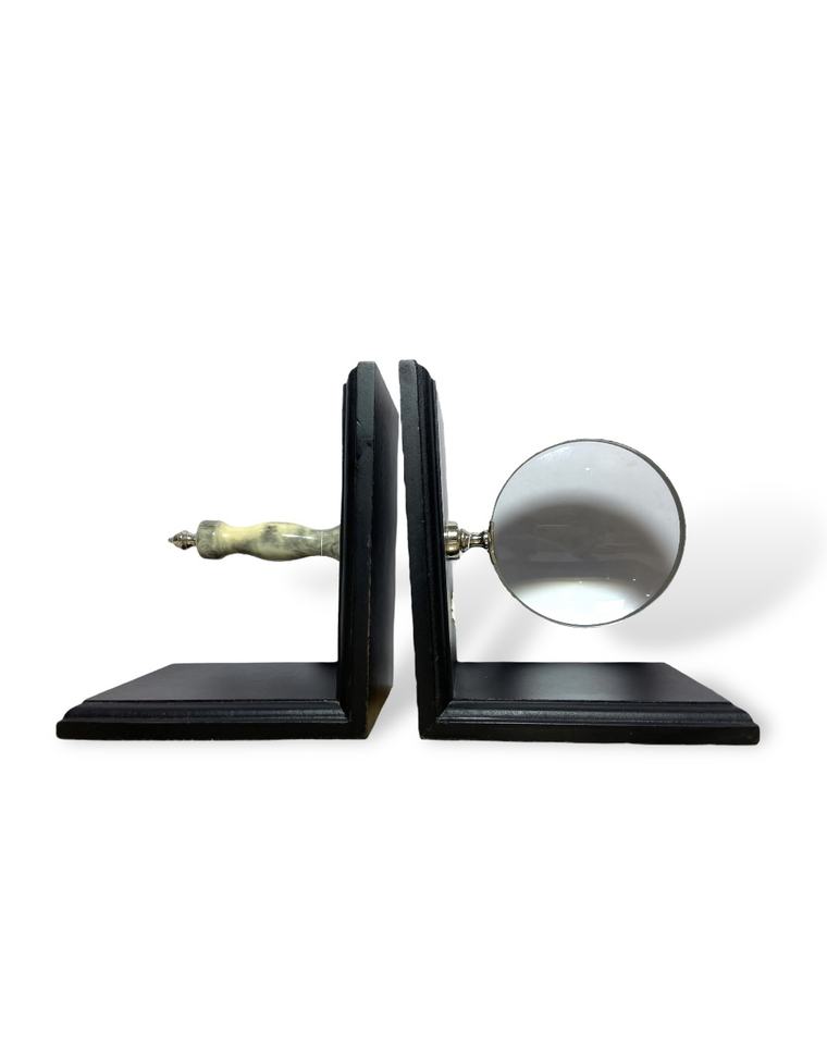 Classic Wooden Base Bookend with Built In Magnifying Glass