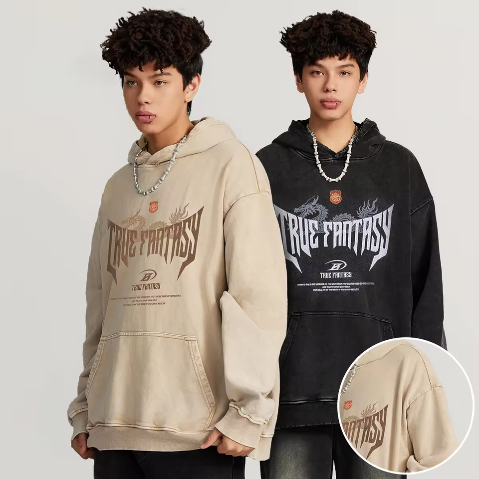 เสื้อฮู้ดดี้ปักลายปีมังกร BE6186 รุ่นใหม่ปี 2024 ผ้าหนา 420GSM ผ้าฝ้าย 100% สไตล์สปริง ปักลายตามสั่ง ซักย้อมสีเอซิด สำหรับผู้ชายและผู้หญิง