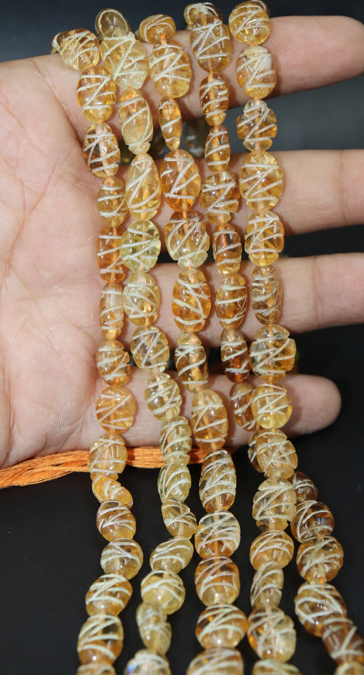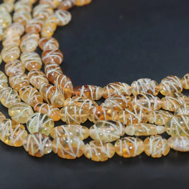 ชื่อสินค้า:ลูกปัดซิทรินแกะสลักรูปทรงวงรี