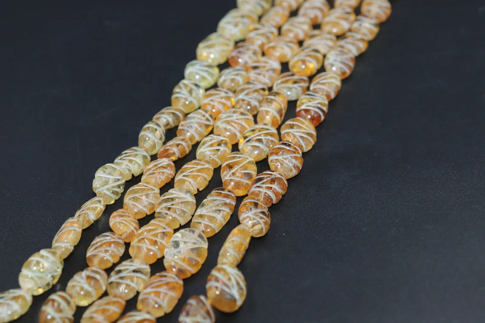 ลูกปัดซิทรินแกะสลักรูปทรงวงรี