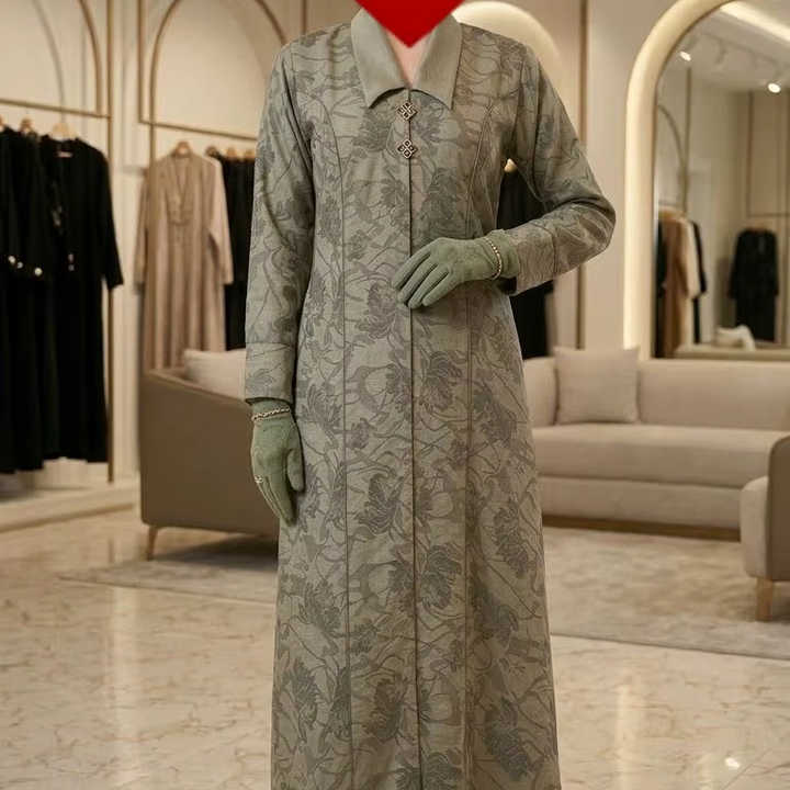 ชุดเดรสแบบอบายะห์ทรงตรงยาวคลุมเท้า พิมพ์ลายด้านหน้า ปิดมิดชิด สวมใส่ได้ทุกวัน สีดำ พร้อมผ้าคลุมศีรษะแบบอิสลาม นำเข้า