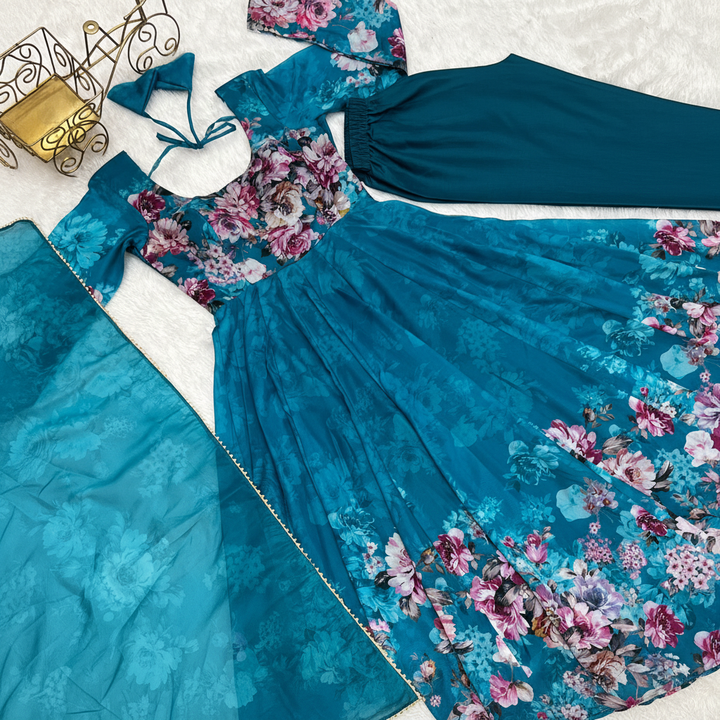 ลาย Kali ที่ดูมีไหวพริบและผ้าแคนวาส patta พร้อมชุด duppta ถูกใส่พร้อมแล้ว *