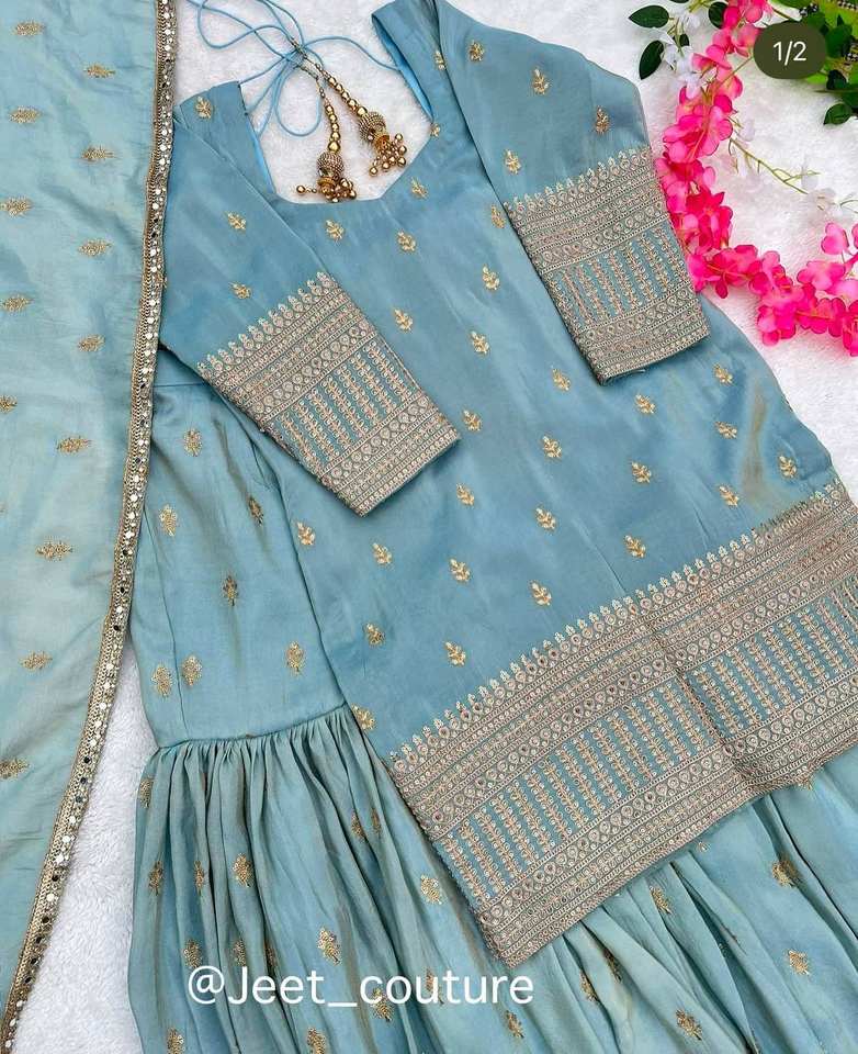 BEAUTIFUL TOP AND PLAZZO WITH FANCY DUPPATA WITH EMBROIDERY WORK
