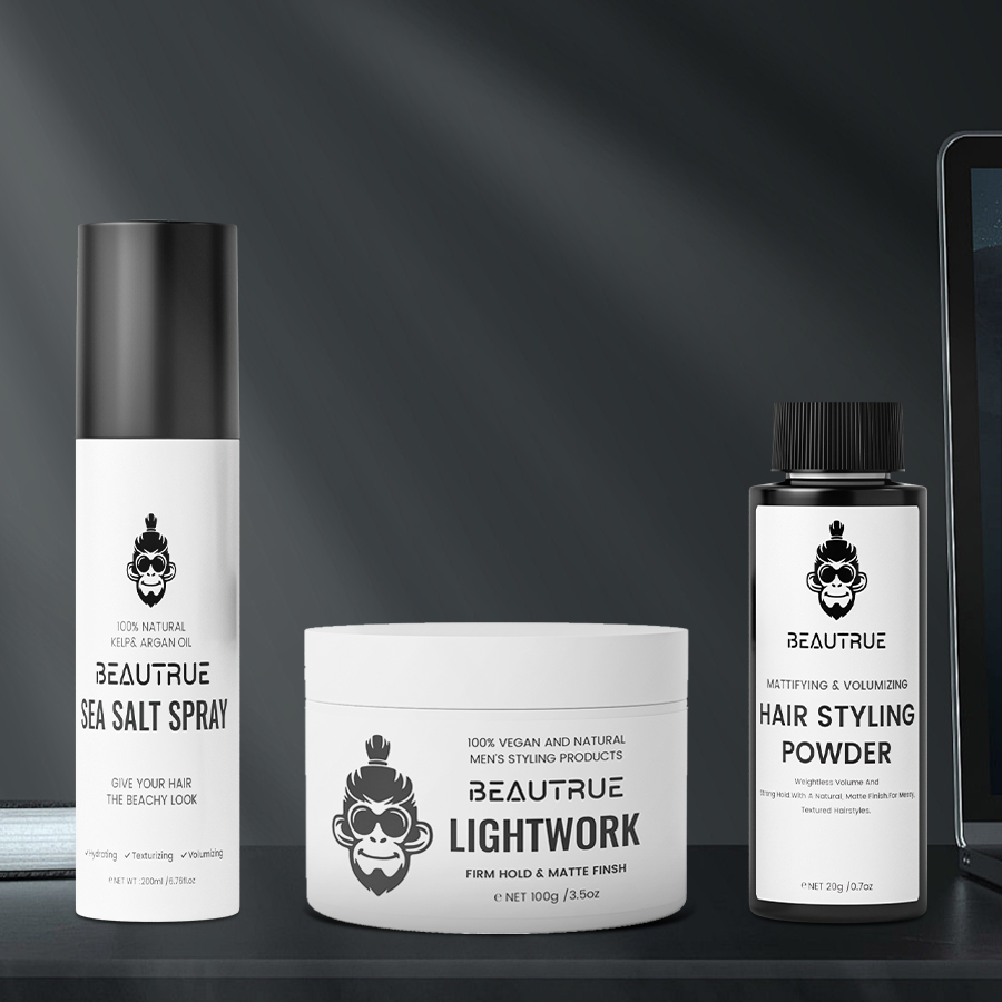 ชุดจัดแต่งทรงผมสุดหรู BEAUTRUE ขายดี ประกอบด้วยแป้งเพิ่มวอลลุ่ม โพเมด ดินเหนียว สเปรย์น้ำทะเล เพิ่มเท็กซ์เจอร์และวอลลุ่มให้เส้นผม