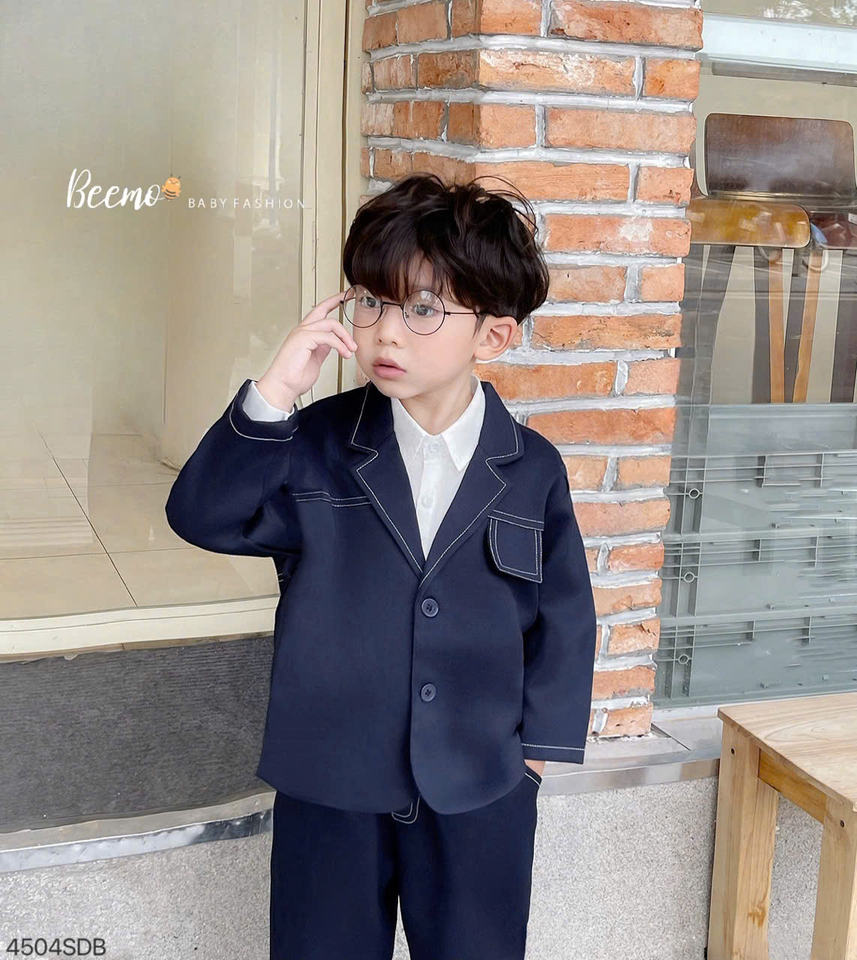 BEEMO Boy Formal Set 3pcs Handsome Style Embossed Lapel Collar Vest White Shirt Baggy Trousers Winter Event Sets for Wedding