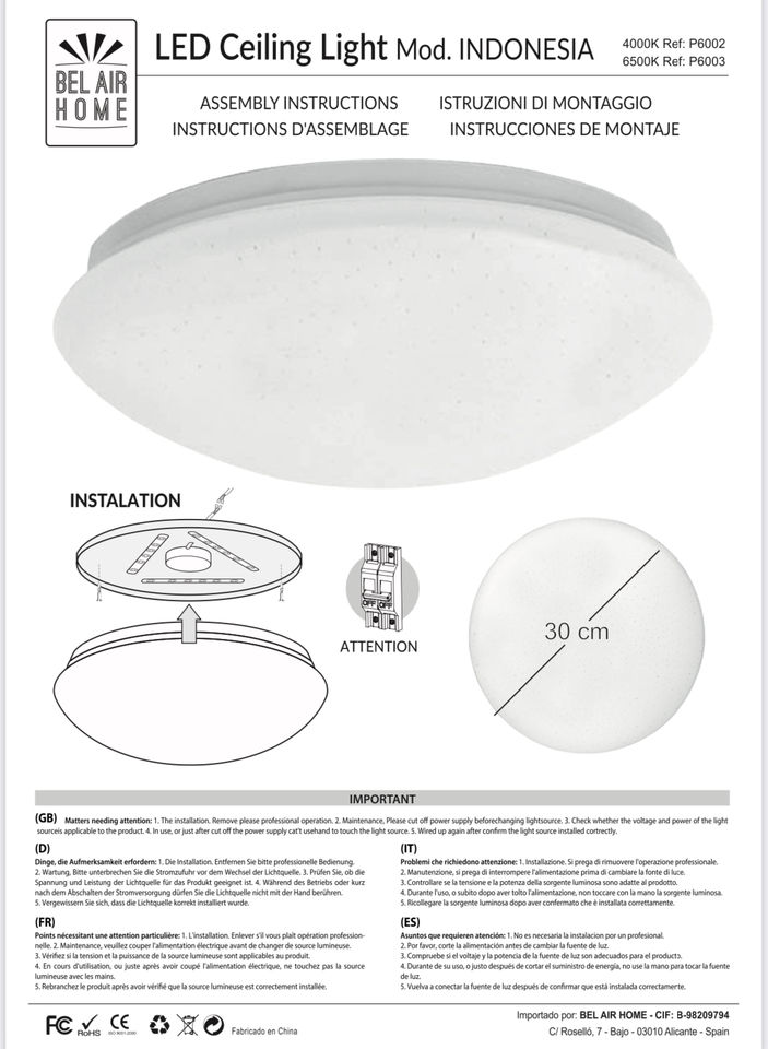 Bel Air Home-ไฟเพดาน LED 20W อินโดนีเซีย1600 LM-สีขาว, การออกแบบที่เรียบง่าย-ห้องครัว, ห้องโถง, ห้องรับประทานอาหาร, ห้องนอน