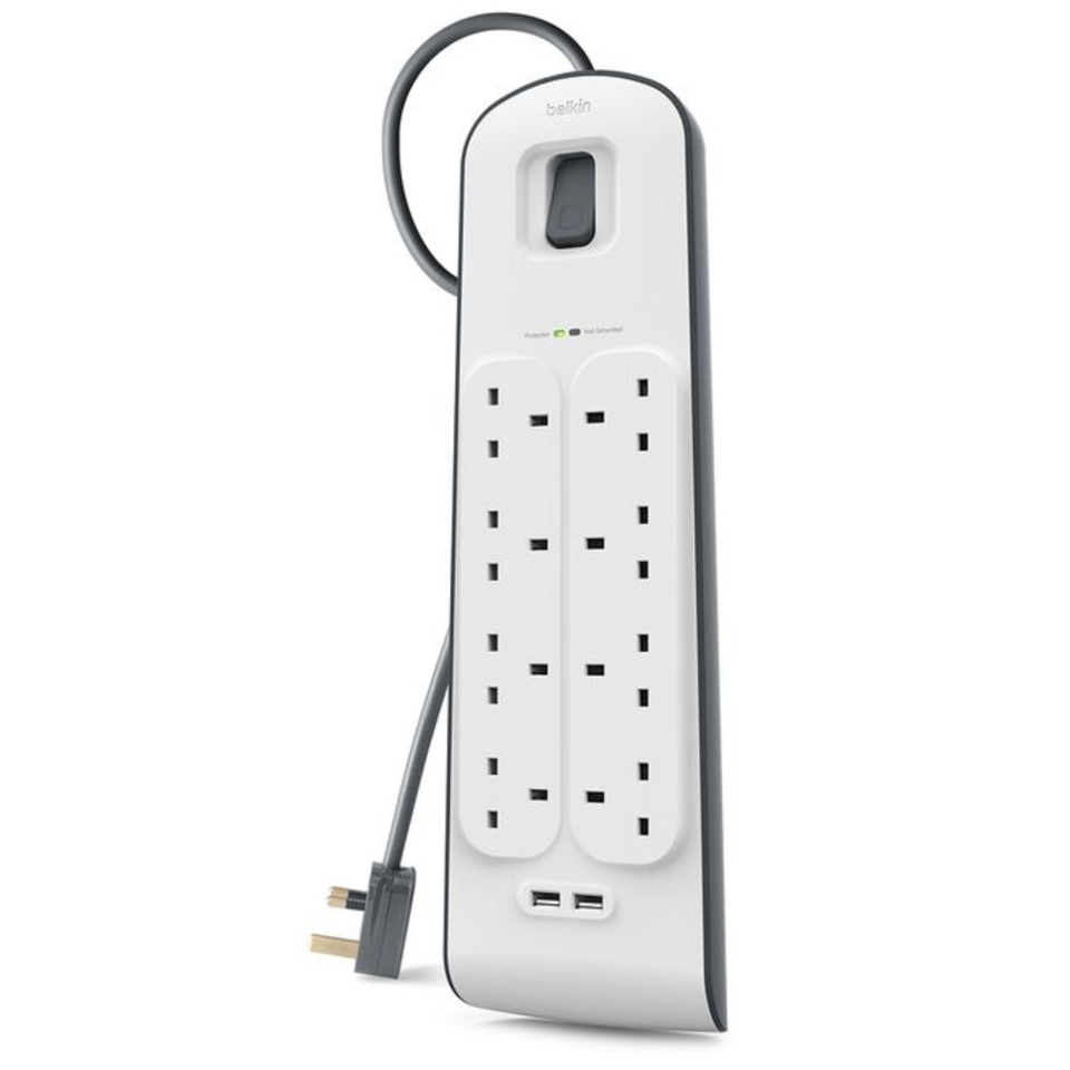 ปลั๊กไฟป้องกันไฟกระชาก BELKIN 8 ช่อง พร้อมพอร์ต USB 2 ช่อง