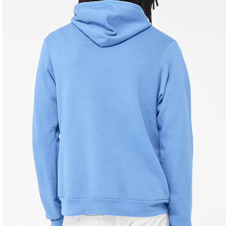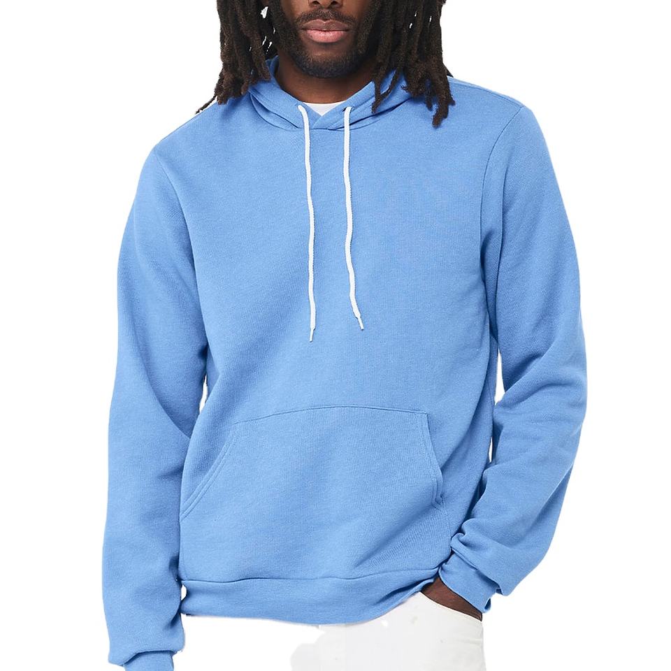 Bella + เสื้อฮู้ดสวมหัวผ้าแคนวาสแบบสวมหัวฟองน้ำขนแกะ100% เปล่าเสื้อกันหนาวมีฮู้ดพิมพ์โลโก้ออกแบบได้ตามต้องการสำหรับทุกเพศ