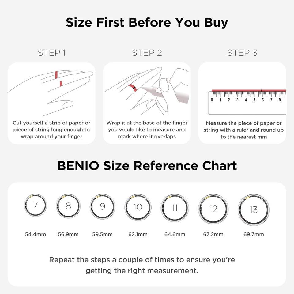 แหวนอัจฉริยะ BENIO Gen 2 สำหรับผู้หญิง/ผู้ชาย เครื่องติดตามสุขภาพ นับก้าว ตรวจจับการนอนหลับ วัดระดับออกซิเจนในเลือด อัตราการเต้นของหัวใจ สีเงิน แบตเตอรี่ 19.99mAh กันน้ำ 5ATM มาตรฐาน IP68