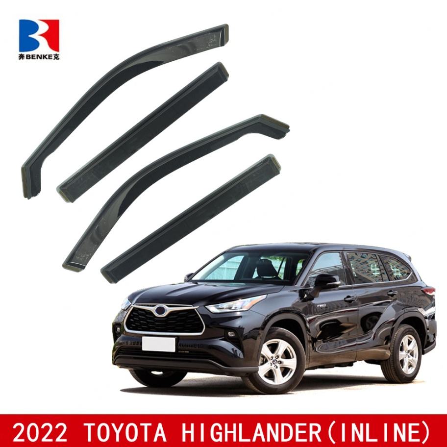 แผ่นกันฝนและกันลม BENKE สำหรับ Toyota Highlander 2022+ รุ่น 4 ประตู วัสดุ PC+สแตนเลส ติดตั้งด้วยเทป 3M