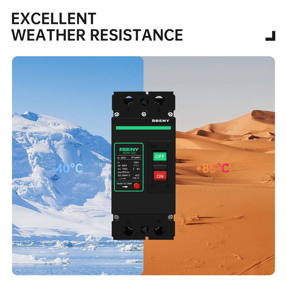 เคสเบรกเกอร์แบบพิมพ์2P 125A 250A 500V สำหรับโซล่าร์เซลล์ Ip65 CE จากประเทศจีน