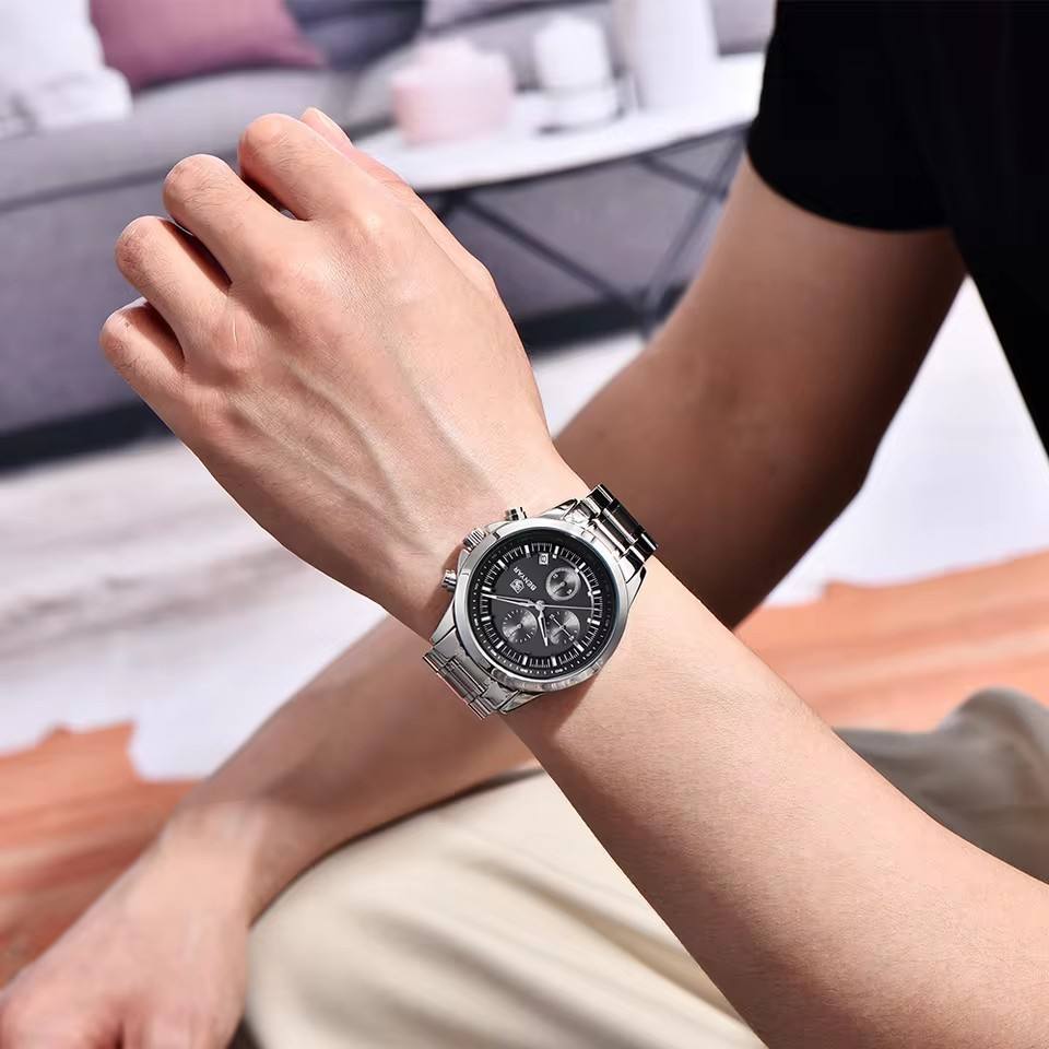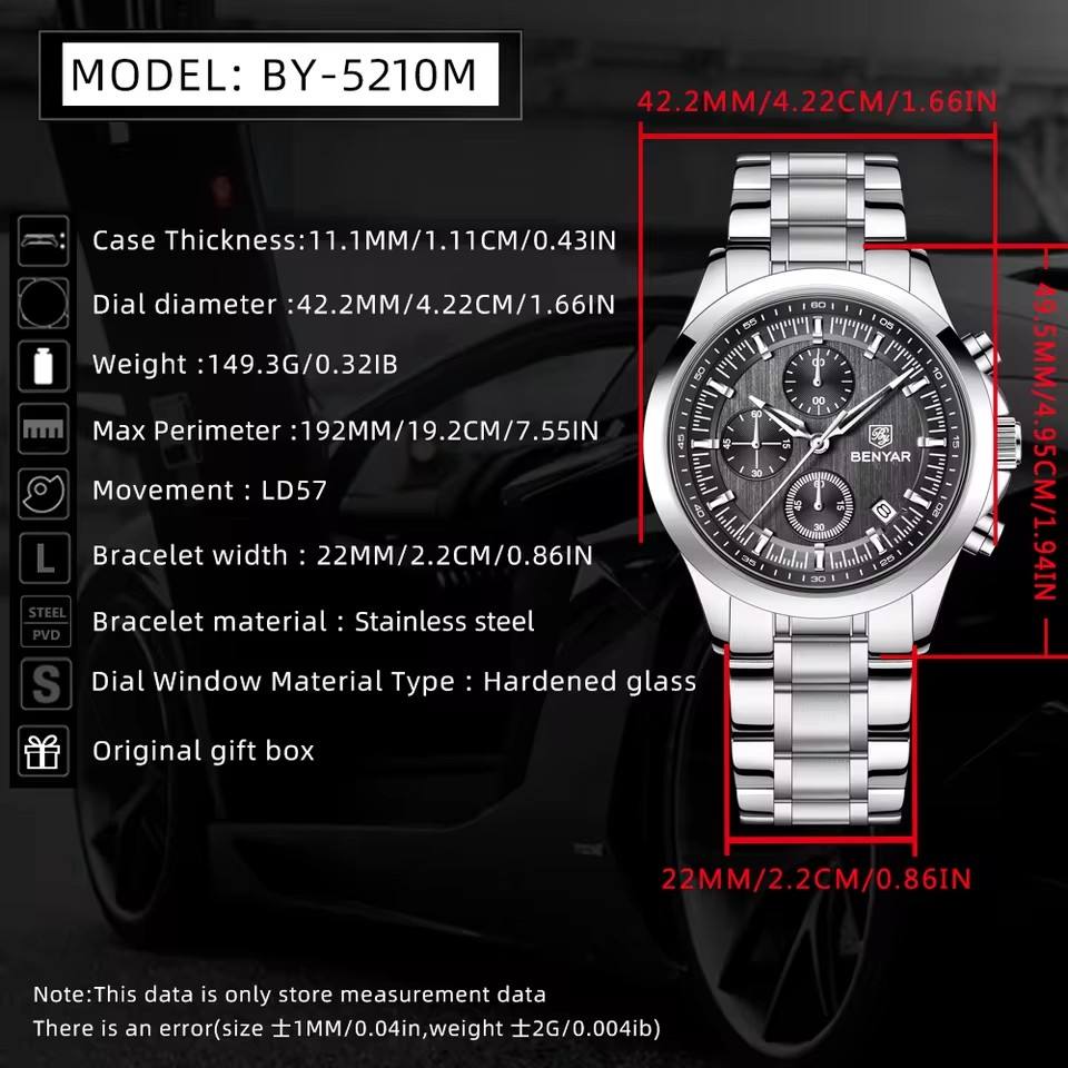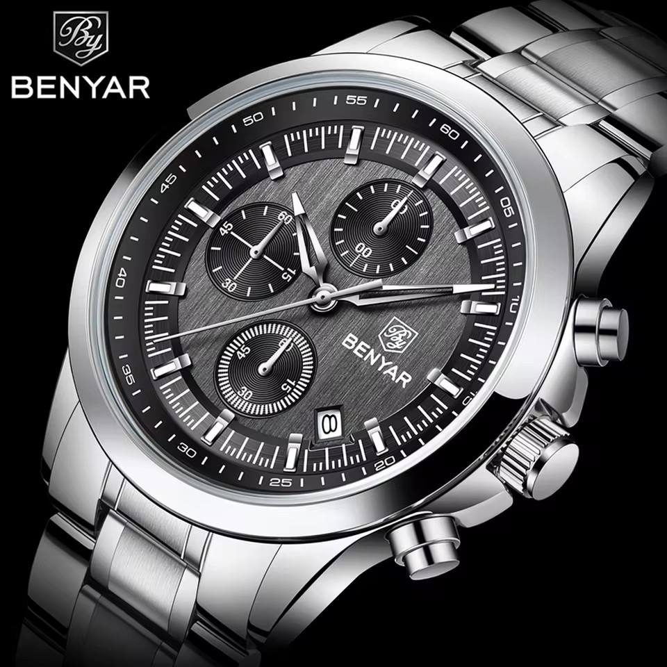 Benyar By-5210ใหม่แฟชั่นบุรุษนาฬิกาควอตซ์เรียบง่ายสายสแตนเลสสตีลกันน้ำ22มม. โครโนกราฟมัลติฟังก์ชัน