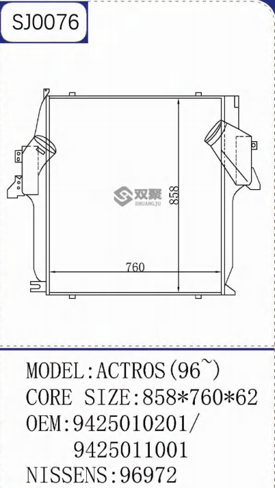 Benz actros 96อินเตอร์คูลเลอร์9425010201 9425011001 nissens รถบรรทุก96972ไม่มีอินเตอร์คูลเลอร์