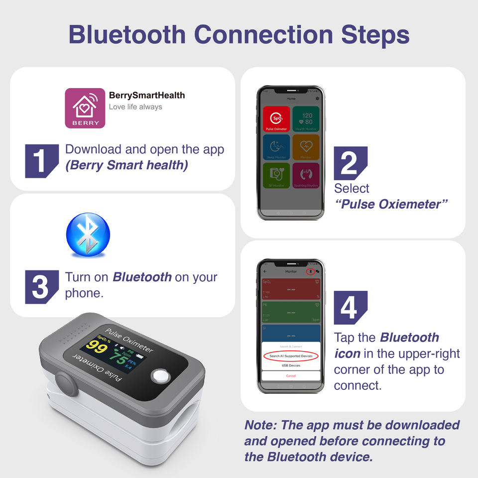 เครื่องวัดออกซิเจนปลายนิ้ว BERRY รุ่น BM1000C ลดราคาพิเศษ ออกแบบด้วยบลูทูธ หน้าจอ OLED