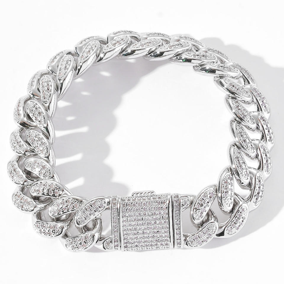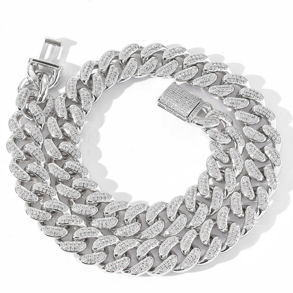 BES สายโซ่เพชรแบบฮิปฮอปไมอามี่คิวบา15มม. สีเงิน925เย็นสำหรับวันครบรอบ