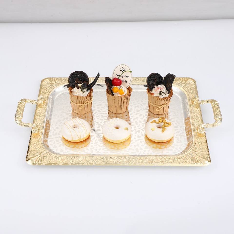 ชื่อผลิตภัณฑ์:ถาดโลหะสำหรับผลไม้แกะสลักสีทองสไตล์ยุโรปหรูหรา