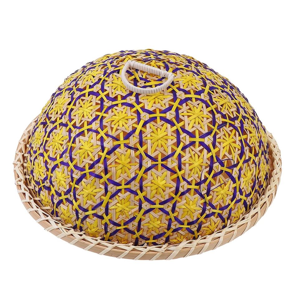 สินค้าขายดี ถาดไม้ไผ่ทรงกลมพร้อมฝาปิด ลายสีสันสดใส ตะกร้าเก็บอาหารมีฝาปิด อุปกรณ์ครัวหลากสี