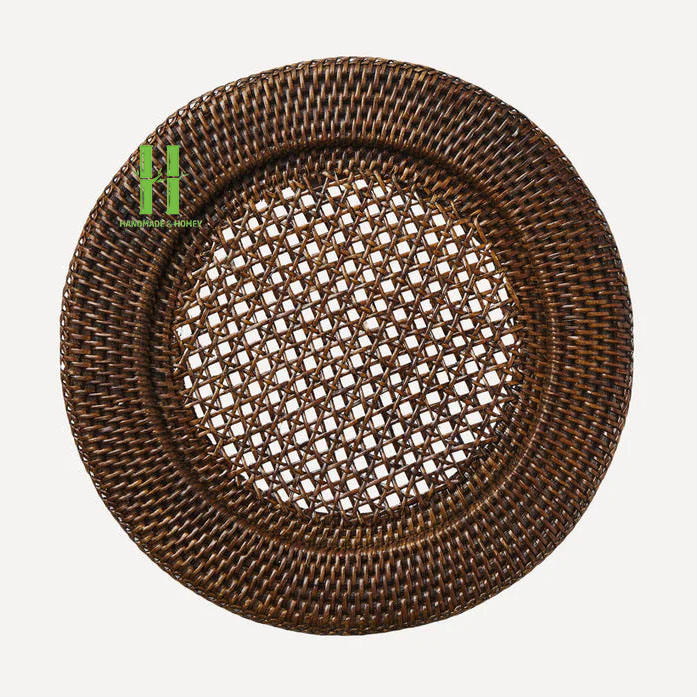 จานรองอาหารหวายสานมือขายดี พร้อมไม้ไผ่ธรรมชาติ เหมาะสำหรับโต๊ะอาหารหรูหรา หรือใช้สำหรับจัดแสดงอาหารจากเวียดนาม