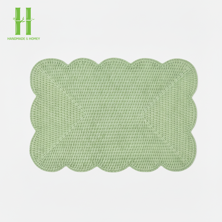 จานรองอาหารหวายธรรมชาติสานมือ งานแต่งงาน ของตกแต่งโต๊ะอาหาร แผ่นรองจานหวายขอบหยัก จากเวียดนาม สินค้าขายดี
