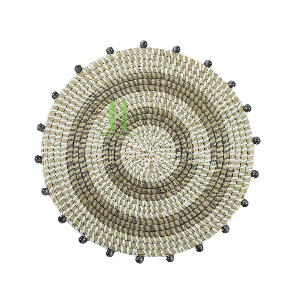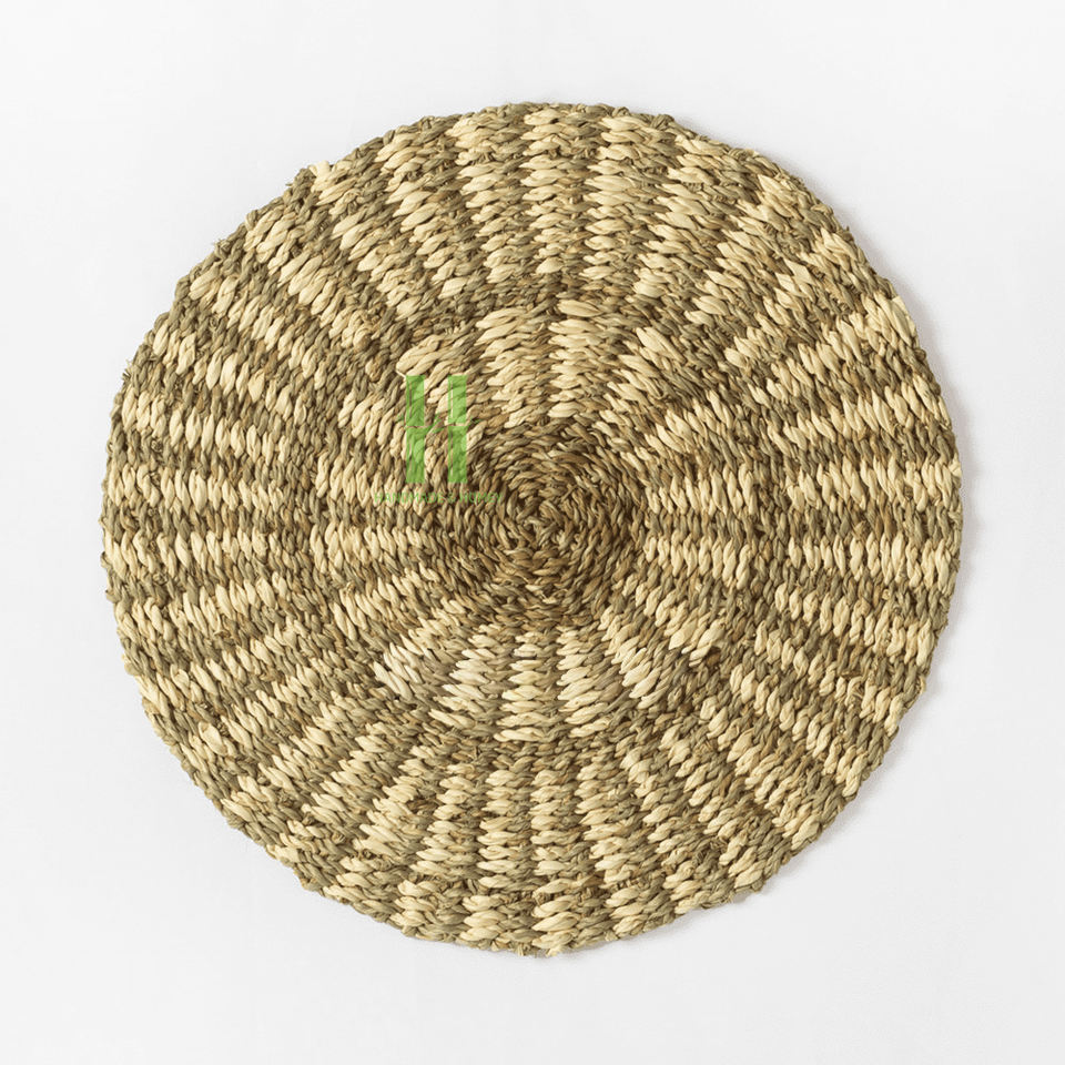 แผ่นรองจานสานมือจากหญ้าทะเลธรรมชาติ สไตล์โบฮีเมียน เป็นมิตรกับสิ่งแวดล้อม ขนาด 35 ซม. ลายสแกลลอป สำหรับโต๊ะงานแต่งงาน สินค้าขายดี