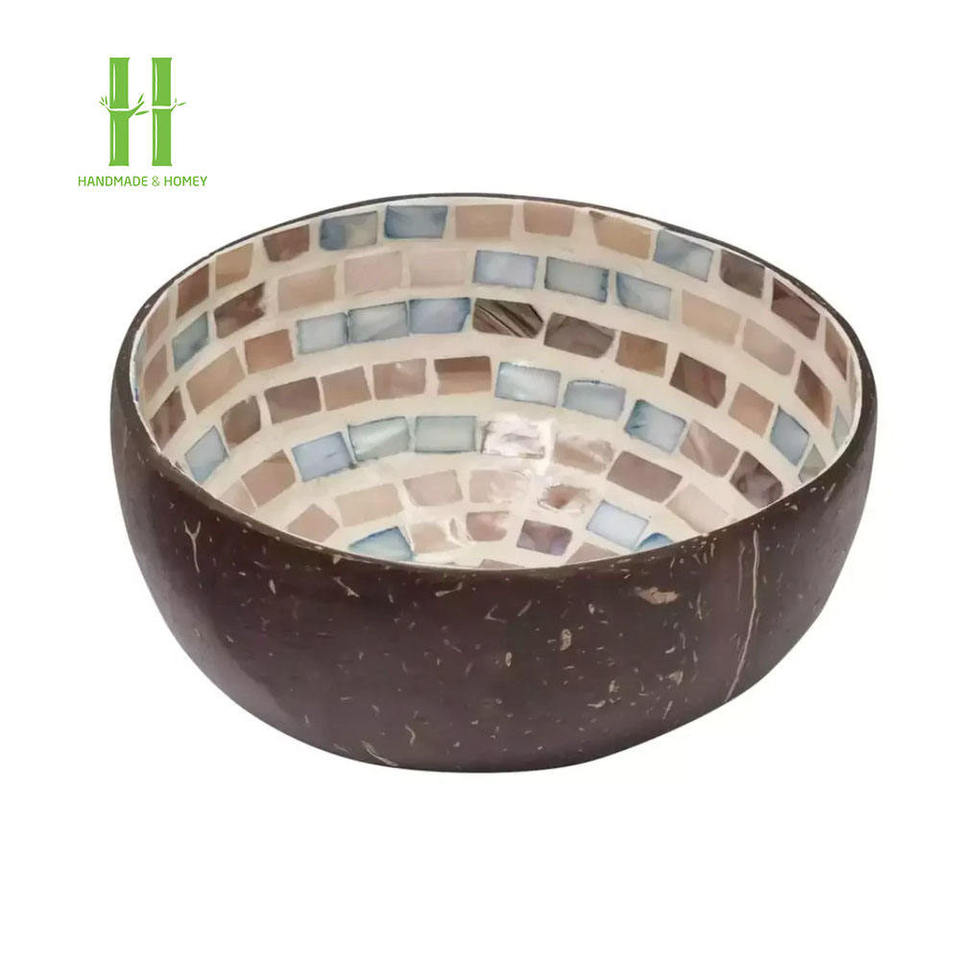 BEST SELLER New Design Handmade Painted Flowers Natural Coconut Shell Wood Lacquer Bowl Vietnamese Salad Candy Bowl