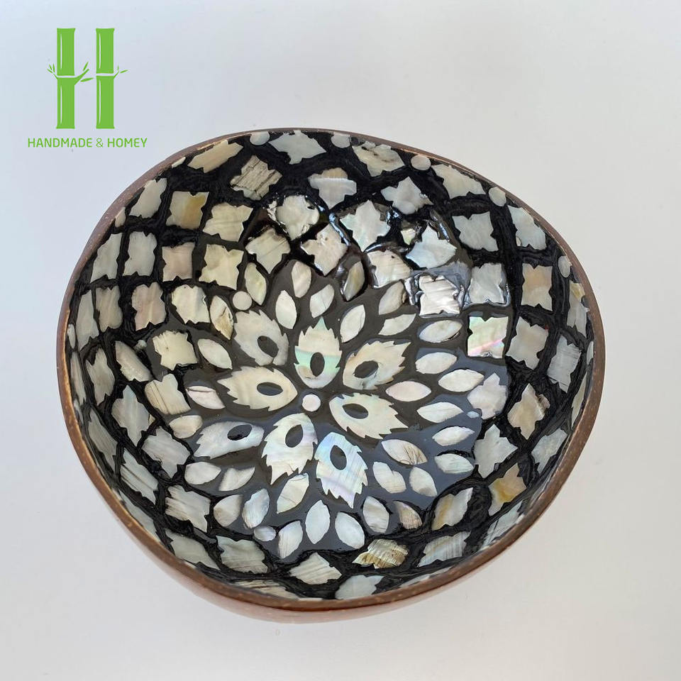 สินค้าขายดี ดีไซน์ใหม่ ชามทำมือ ลายดอกไม้เพ้นท์ด้วยมือ ชามไม้เคลือบเงาจากกะลามะพร้าวธรรมชาติ ชามสลัด/ขนมหวานสไตล์เวียดนาม