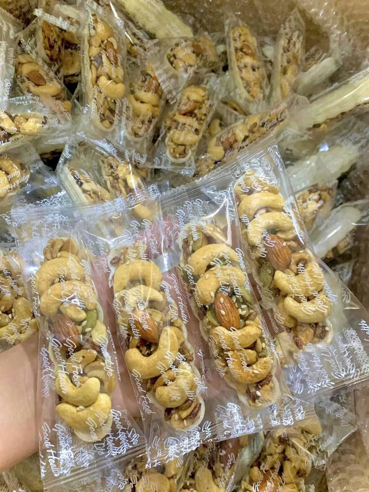 เนื้อหา:ถั่วผสม (เม็ดมะม่วงหิมพานต์, อัลมอนด์, ถั่วลิสง, วอลนัท), ฟักทอง