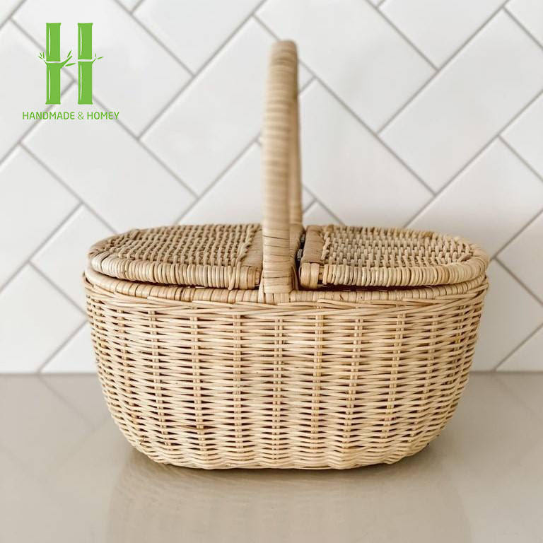 ตะกร้าปิกนิกหวายสานมือคุณภาพพรีเมียม ขายดี ราคาถูก สำหรับขายส่ง อุปกรณ์ตั้งแคมป์ ตะกร้าใส่ของ จากเวียดนาม