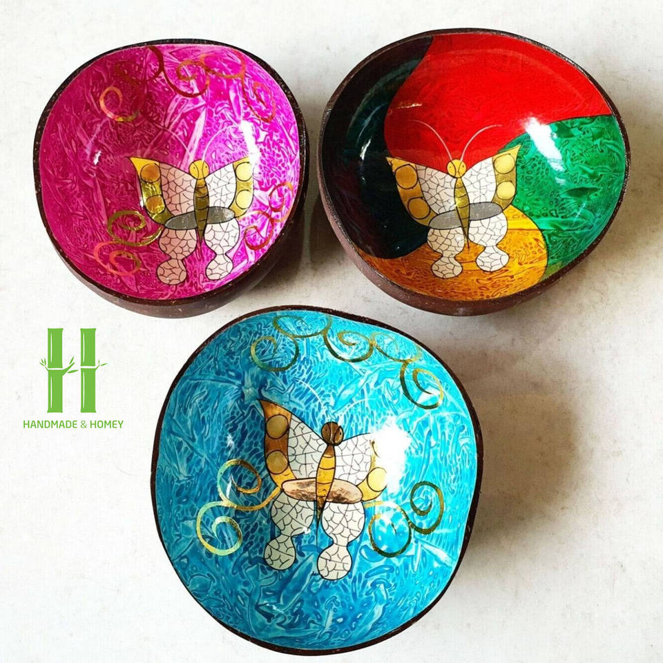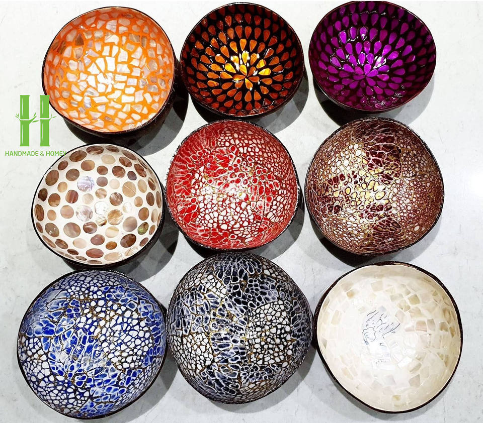 ชามมะพร้าวเคลือบเงาทำมือจากเวียดนาม ขายดีที่สุด ประดับเปลือกหอยและมุก