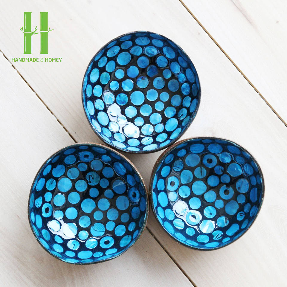 ชามมะพร้าวเคลือบเงาทำมือจากเวียดนาม ขายดีที่สุด ประดับเปลือกหอยและมุก