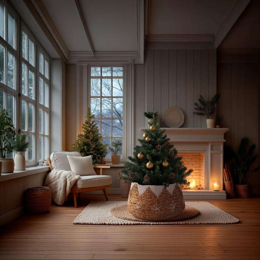 กระโปรงต้นคริสต์มาสวินเทจจากผักตบชวา งานถักทอธรรมชาติ เป็นมิตรกับสิ่งแวดล้อม พร้อมงานถักมาคราเม่ ขายดีที่สุด