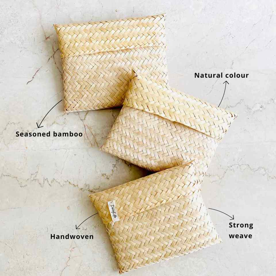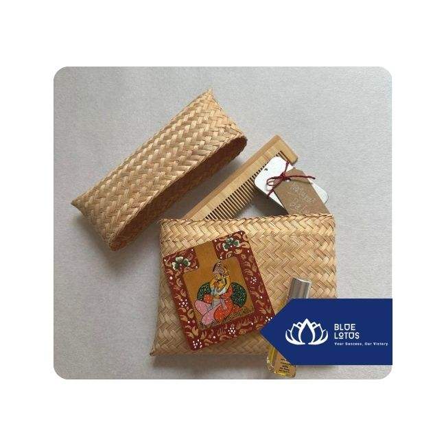 ถุงผ้ารูดเชือกไม้ไผ่ลายบัวสีน้ำเงินขายดีที่สุด ดีไซน์เวียดนามรักษ์โลก ปรับแต่งสีและขนาดได้ (4-6 นิ้ว) สวยงามทันสมัย