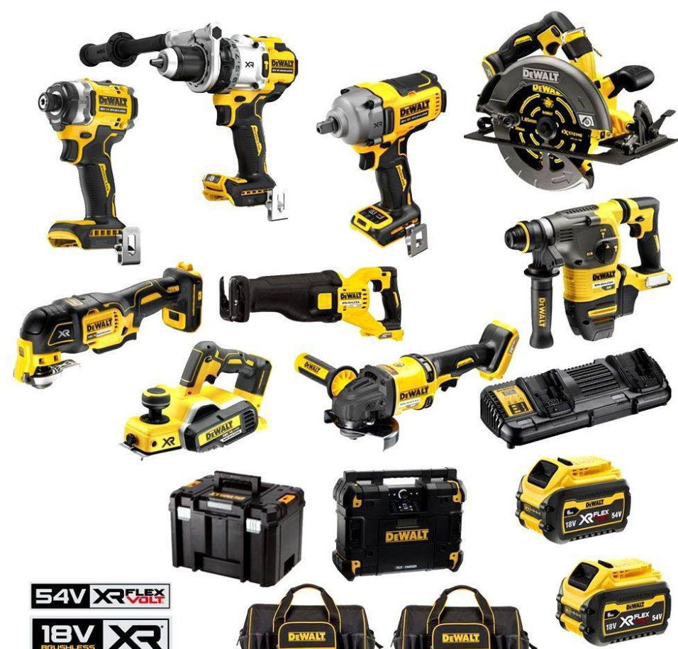 สว่านกระแทกไร้สายแบบไร้แปรงถ่าน 18V/54V 9.0Ah รุ่นขายดีที่สุด สำหรับงานอุตสาหกรรม ของใหม่ 100% ชุดคอมโบ 10 ชิ้น รุ่น DCZ1001X2-XE สว่านขนาดเล็ก