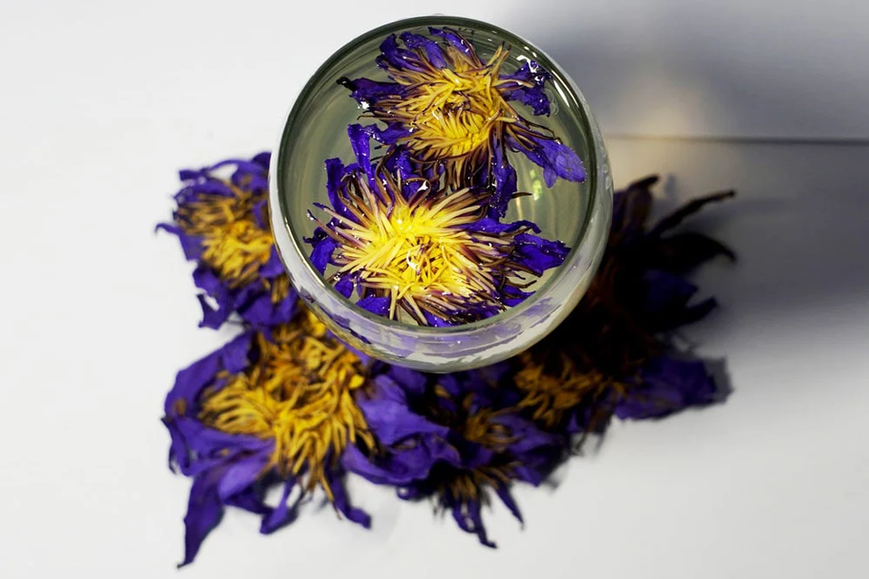 ชาดอกไม้ดอกบัวบดและดอกบัวสีน้ำเงิน/เหลืองและถุงชาบัวฯลฯชนิด
