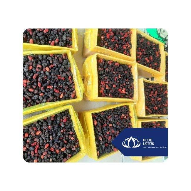 มัลเบอร์รี่แช่แข็งขายดีที่สุด ใช้สำหรับทำน้ำผลไม้ สมูทตี้ และผลิตอาหาร สำหรับขายส่ง รับสั่งทำพิเศษจากเวียดนาม