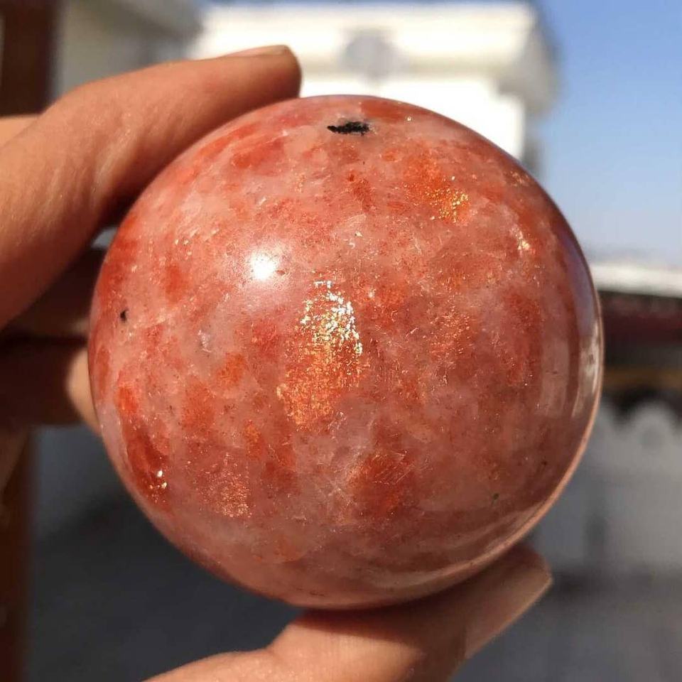 ลูกแก้วคริสตัลซันสโตนธรรมชาติแกะสลัก หินมงคลเสริมฮวงจุ้ย ของที่ระลึกนำโชค