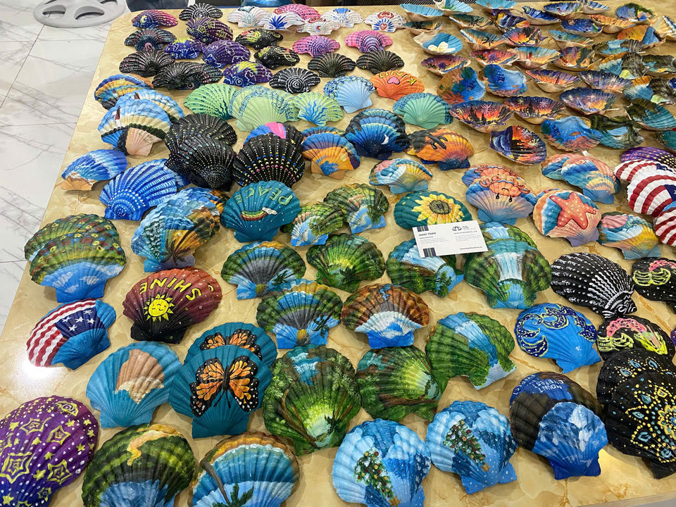 การตกแต่งงานฝีมือแบบหอยเชลล์ทาสีสำหรับจัดแสดงในห้องและการจัดวางภาพเหมาะสำหรับแผงขายงานฝีมือที่ผลิตในเวียดนาม