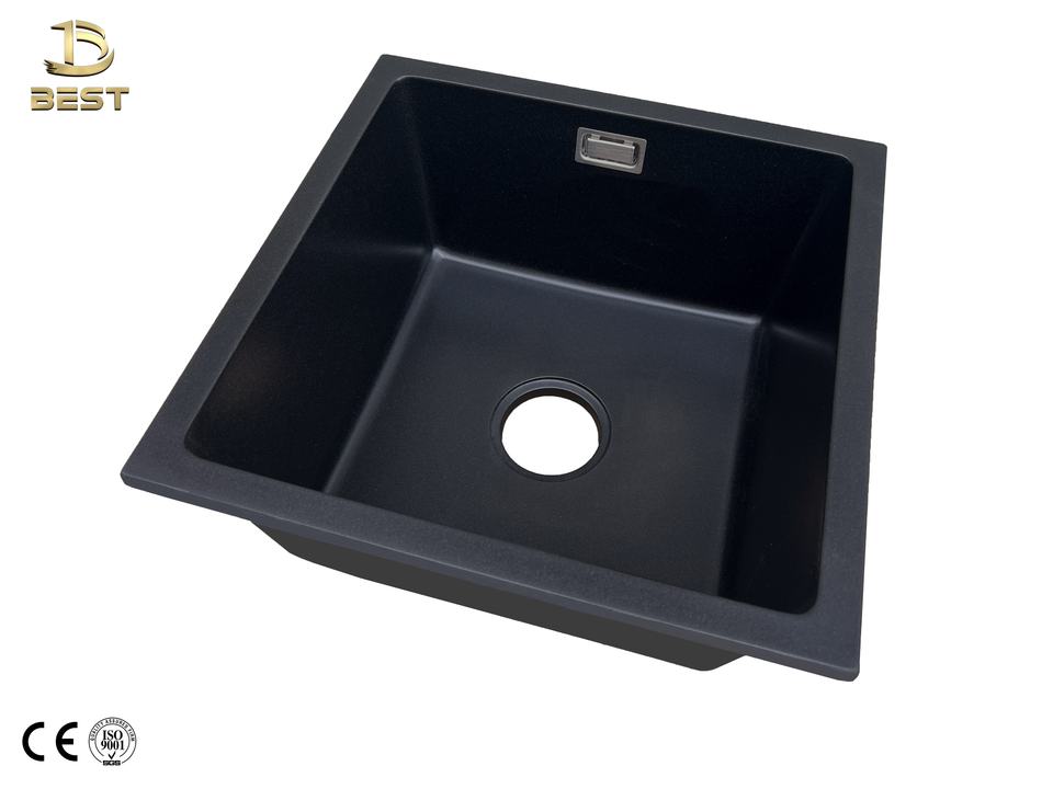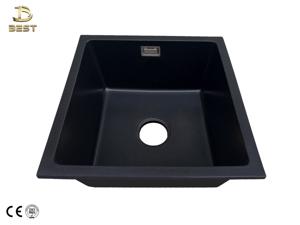 BEST Vietnam-Made Black Quartz Single Bowl Kitchen Sink Composite Granite Undermount Installation 10mm Thickness Modern Design