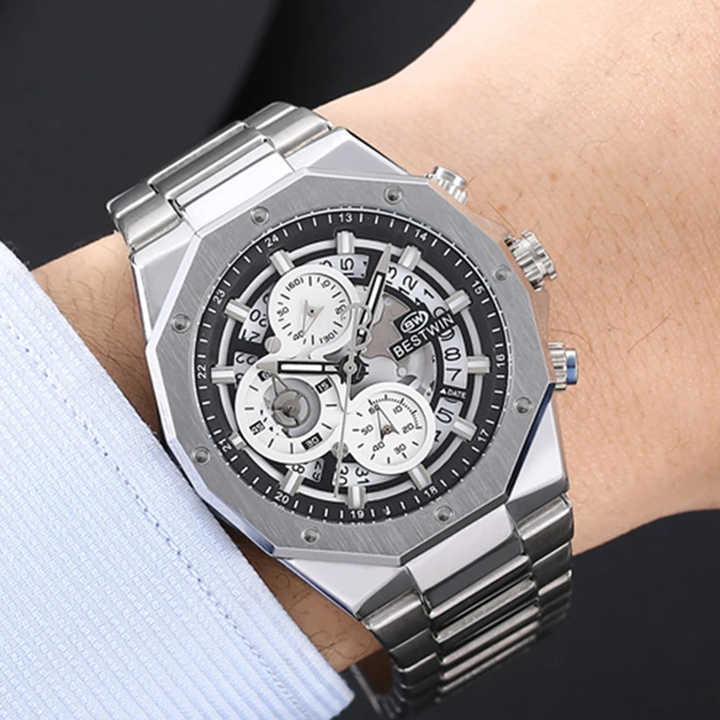 นาฬิกา BESTWIN 2024 หรูหรา เรียบง่าย แฟชั่น ยูนิเซ็กส์ สายโลหะผสมสแตนเลส สายซิลิโคน ควอตซ์ โครโนกราฟ กันน้ำ 30 เมตร Citizen