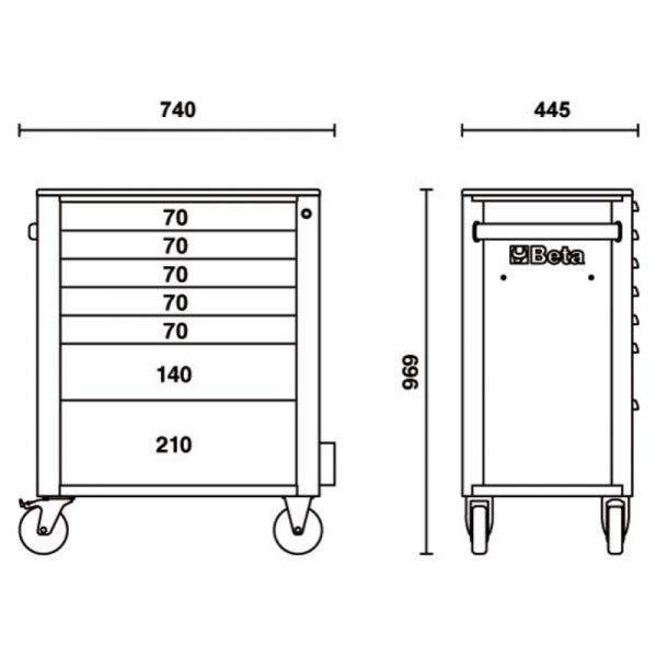 ตู้เก็บเครื่องมือแบบมีลิ้นชัก7ลิ้นชักห้องเก็บอุปกรณ์เคลื่อนที่รุ่นเบต้า