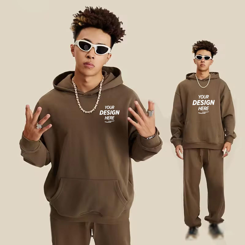 BEW0071 เสื้อฮู้ดผู้ชายแบบโอเวอร์ไซส์ แฟชั่นสตรีทแวร์ ผ้าหนา 445GSM สำหรับฤดูหนาว เป็นมิตรต่อสิ่งแวดล้อม ไม่เป็นขุย สีพื้น ขายส่ง