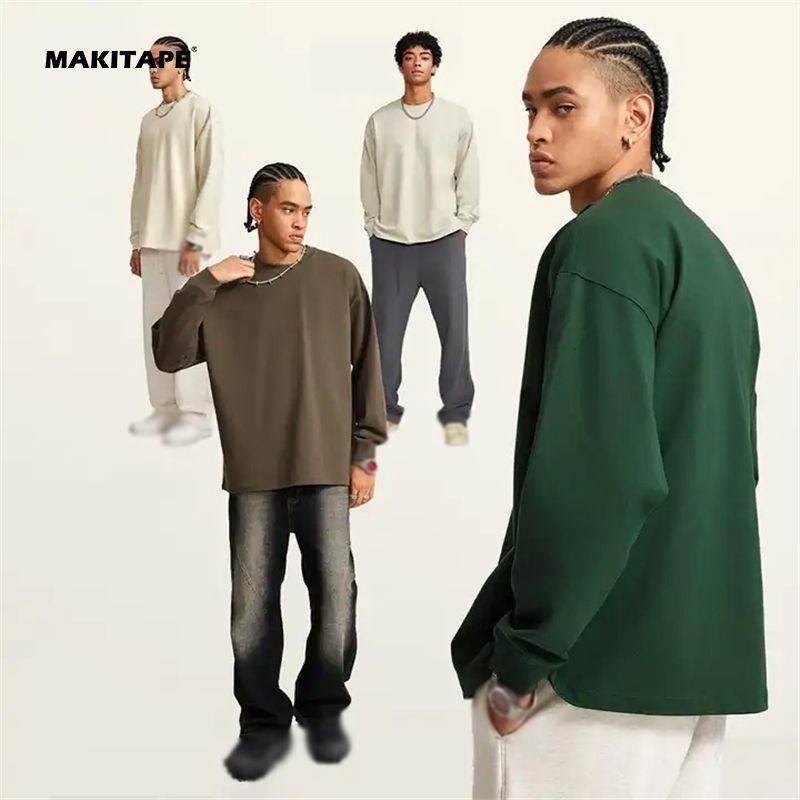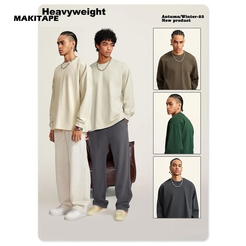 เสื้อสเวตเชิ้ตคอกลมทรงหลวม รุ่น BEW0186 สำหรับผู้ชาย ผ้าคอตตอน 100% ทรงโอเวอร์ไซส์ ไหล่ตก ปักลายเทคนิค สำหรับฤดูใบไม้ร่วง น้ำหนัก 300 กรัม มีซับใน