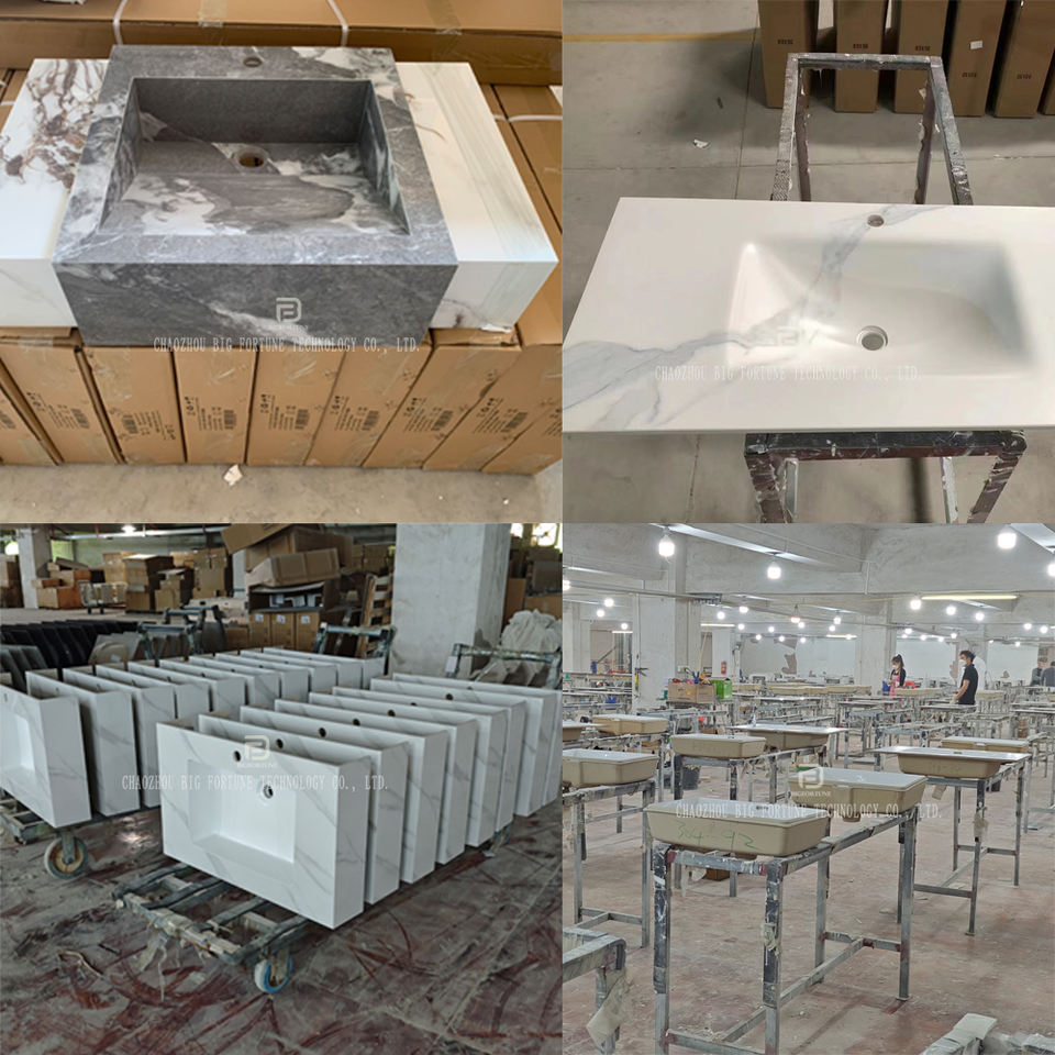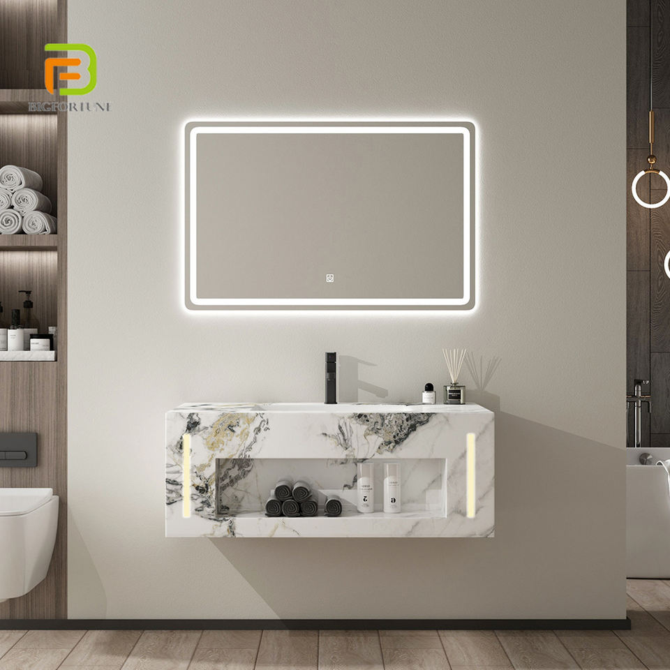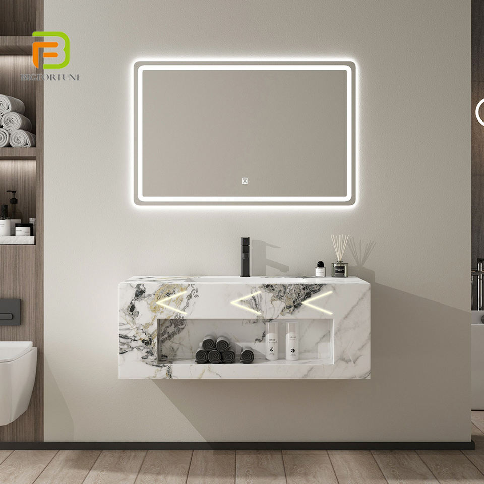 BF Wholesale Customize Rock Slate Basin Sink Vanity Set Wall Mounted Marble Sintered Stone Wash Basin Bathroom Vanities Cabinet