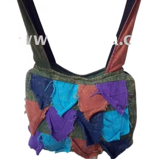 กระเป๋าสะพายข้างใช้ได้ทุกเพศ BG-245กระเป๋าผ้าฝ้ายแท้ย้อนยุคหินล้างโพลีเอสเตอร์มีซิปตกแต่งพู่ห้อย