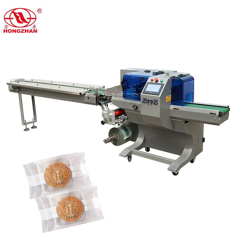 เครื่องบรรจุภัณฑ์แนวนอนอัตโนมัติความเร็วสูง BG-350, เครื่องบรรจุภัณฑ์แบบหมอนสำหรับขนมไหว้พระจันทร์ ติ่มซำ ด้วยฟิล์ม PE และฟิล์ม PVC