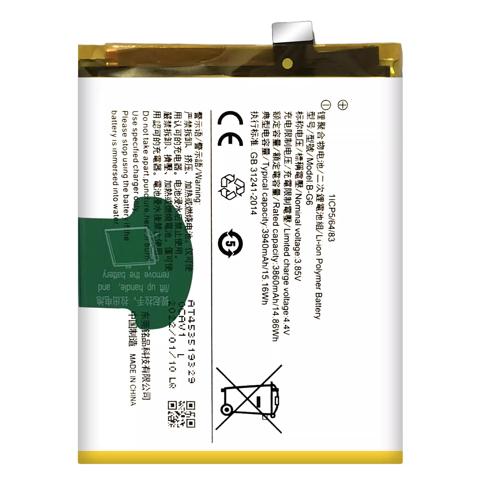 แบตเตอรี่ BG6 ของจีนไปศรีลังกาสำหรับ VIVO S1 V1831A V1831T 3940mAh แบตเตอรี่แท้ 3940mAh แบตเตอรี่เปลี่ยนโทรศัพท์มือถือ VIVO